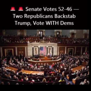 Senate Passes Vote 52-46 as Two Republicans Break Ranks with Trump